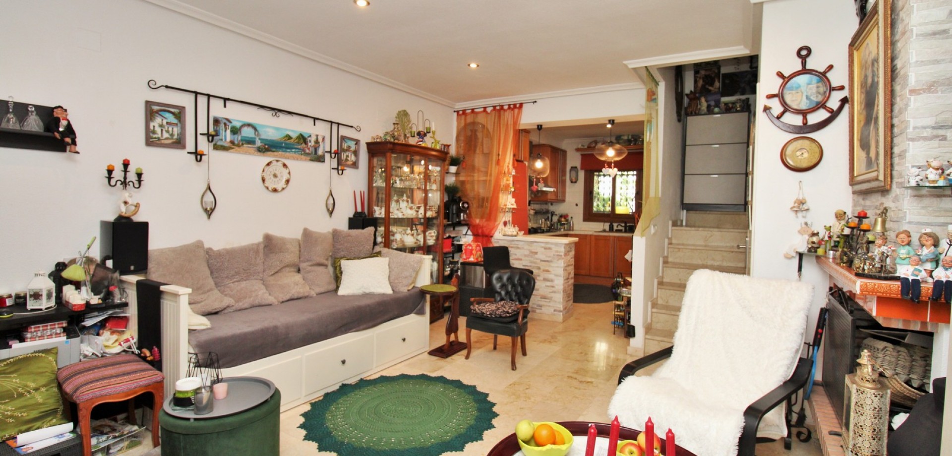 This well-presented Sofía-style townhouse is located in the sought-after R9, Pau 8 area of Villamartin, within a secure gated community and just 10 minutes’ walk from Villamartin Plaza and Villamartin Golf Course. The ground floor features a front tiled terrace, ideal for outdoor seating, leading into a bright lounge–dining area with internal staircase. To the rear is a fitted kitchen with access to a private patio, along with a guest WC on this level. Upstairs, there are two double bedrooms...