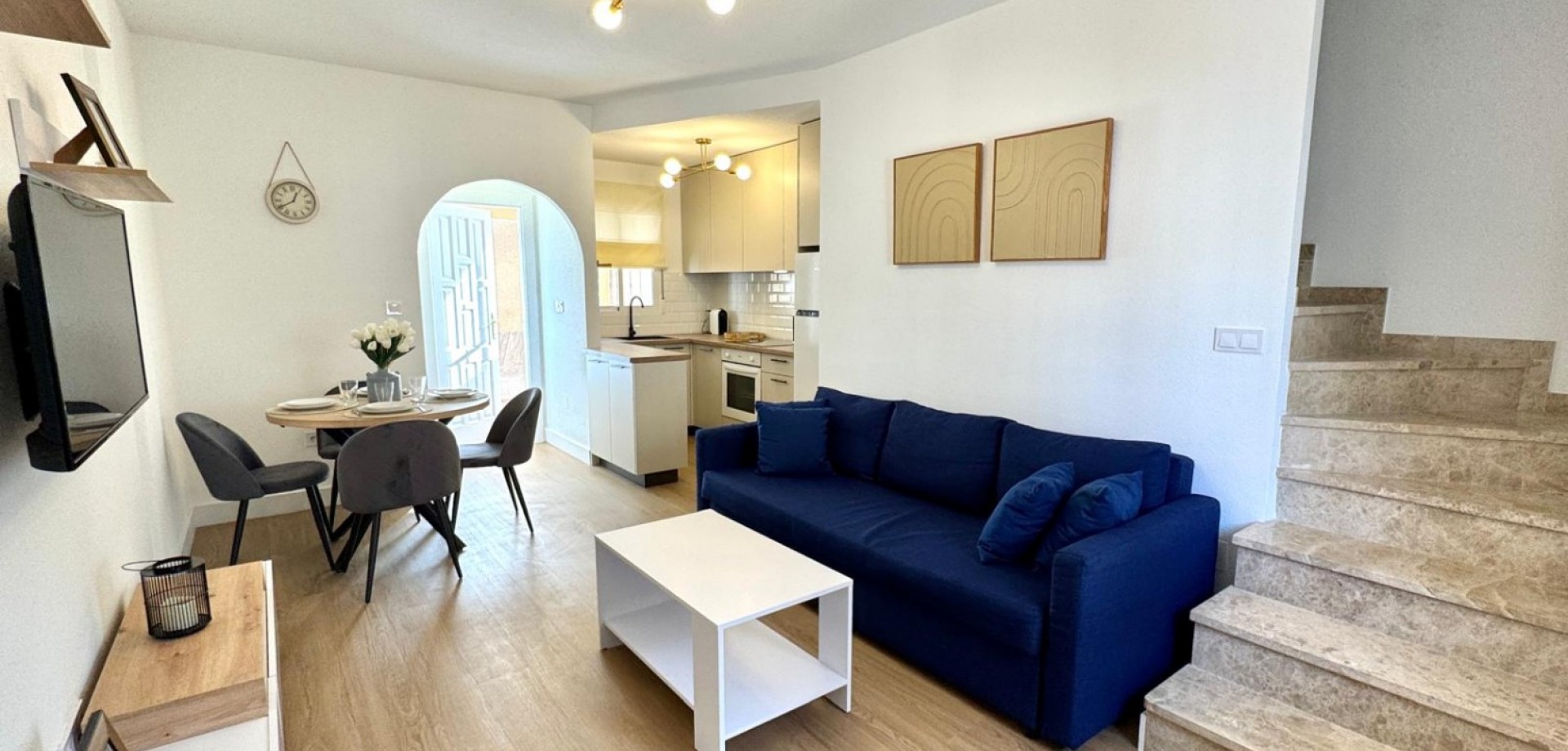 This two-story townhouse , completely renovated in 2026 , is presented as a turnkey property , ready to move into or start generating income from day one. Located in a quiet and well-maintained residential area of Villamartín , it combines comfort, privacy, and high investment potential . The property is sold fully furnished , including appliances and decorative items , making it an ideal option as a permanent residence , holiday home or investment in tourist rentals . On the ground ...