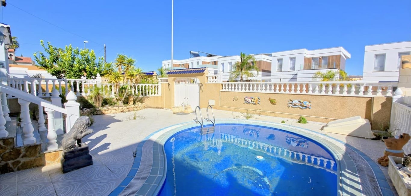 FOR SALE 270 m2 detached house located in the Las Filipinas - Blue Lagoon residential area, a short drive from shops, services, and amenities. Quiet area. Close to the golf course. The house boasts numerous amenities, including a private pool, garage, and garden. The spacious house features 3 bedrooms, 2 bathrooms, a separate kitchen, a utility room, a large living room, terraces, and a storage room. It is being sold furnished and with appliances. Property tax (IBI): approximately €500/year. No ...