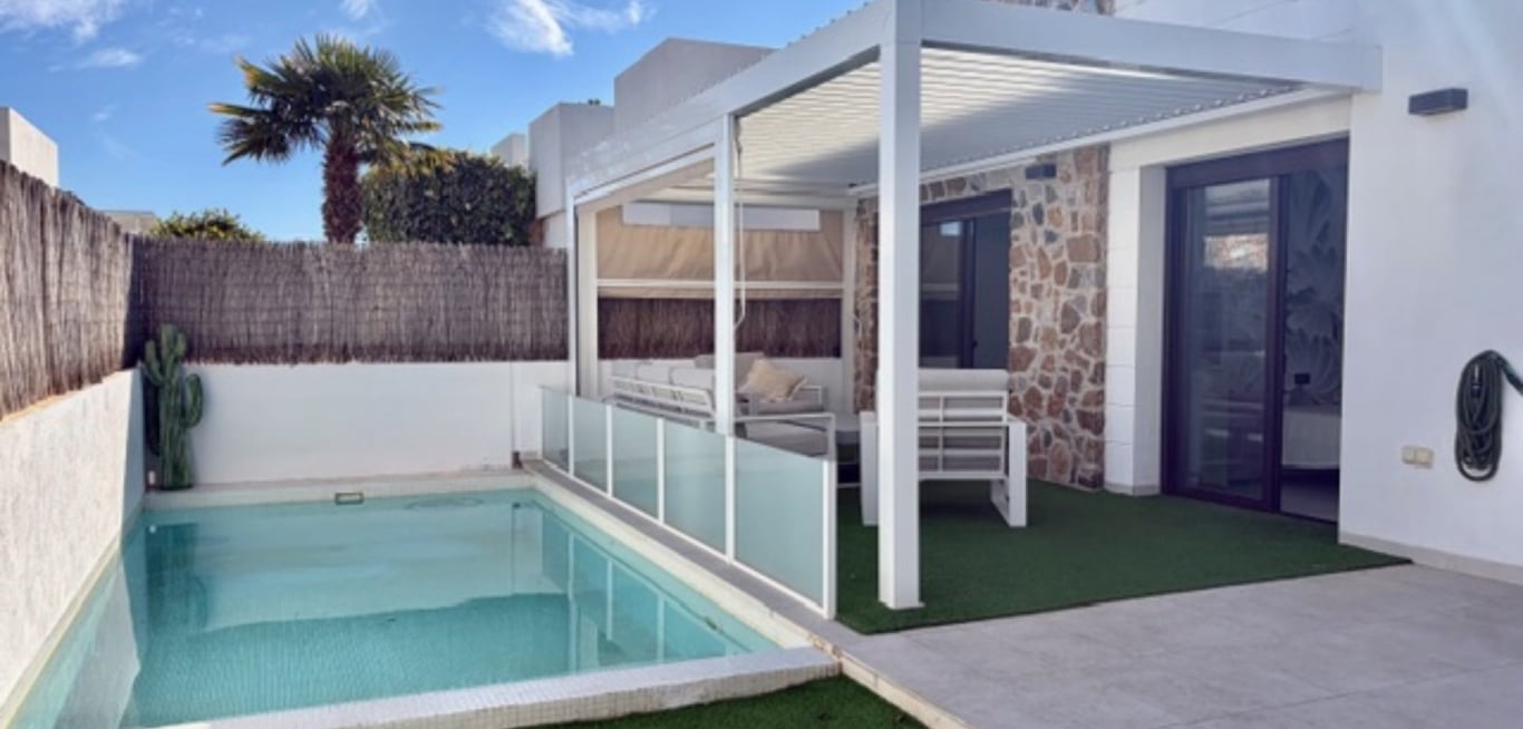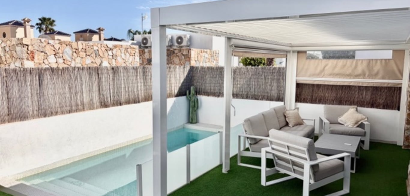 Discover this beautifully presented single level detached villa (2017) located in the highly sought-after area of Lomas de Cabo Roig (Orihuela Costa), Alicante. This modern villa offers a bright open plan living/dining area with direct access to the terrace and private swimming pool area, ideal for entertaining or relaxing in the sun, a modern open plan fully equipped kitchen, air conditioning (hot/cold) throughout the property, three bedrooms with fitted wardrobes, two bathrooms (one is en-...