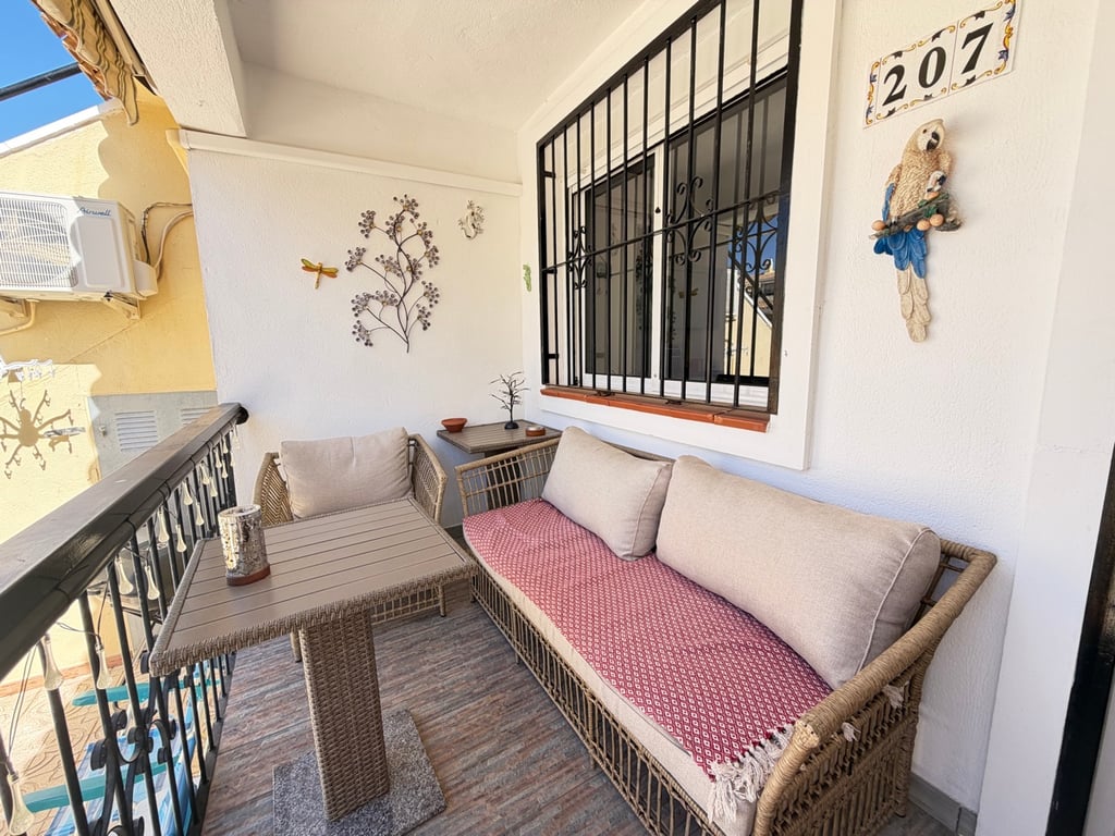 This well-presented ground floor apartment is located within the gated community of Lomas del Golf in the popular area of Villamartín. The property features two spacious bedrooms and one modern bathroom, offering comfortable and practical living throughout. The apartment enjoys attractive pool views from the front terrace, creating a pleasant setting to relax and unwind. With both front and rear garden areas, the property benefits from multiple outdoor seating spaces, perfect for enjoying the ...