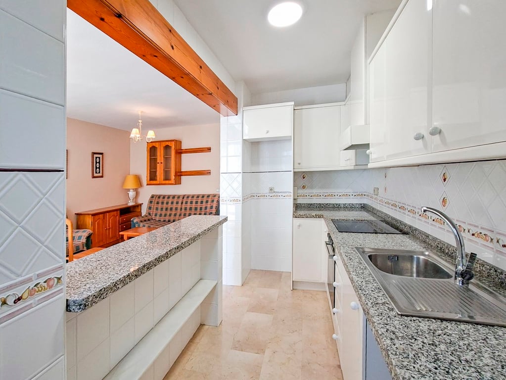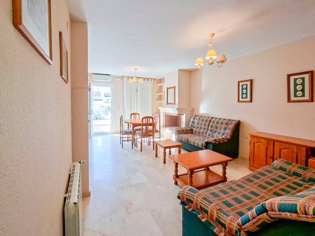 The property is distributed over two floors and features a private front and rear garden, as well as a spacious solarium of approximately 36 m2 on the upper level, partially covered, with lighting and a water connection, ideal for enjoying the climate all year round. On the main floor there is a bright living-dining room with fireplace, an open-plan kitchen equipped with cabinetry, granite worktop and appliances, a full bathroom, and two spacious bedrooms with built-in wardrobes. The property...