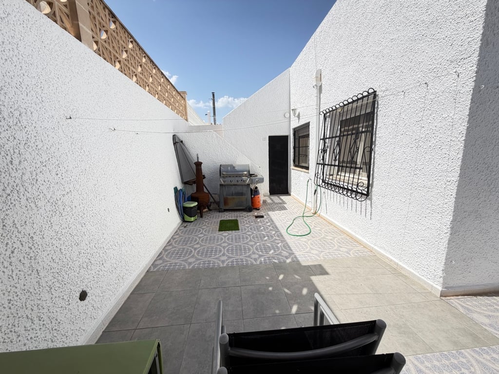 Fantastic semi-detached bungalow situated in the sought-after area of Blue Lagoon, Villamartín. Set on a generous corner plot, the property boasts a large side garden with multiple seating areas—perfect for outdoor dining and relaxation. A spacious private rooftop solarium offers lovely open views across the surrounding area. Inside, an enclosed front terrace leads into a bright and modern open-plan living and kitchen space, designed for comfort and easy living. The property features two wel...
