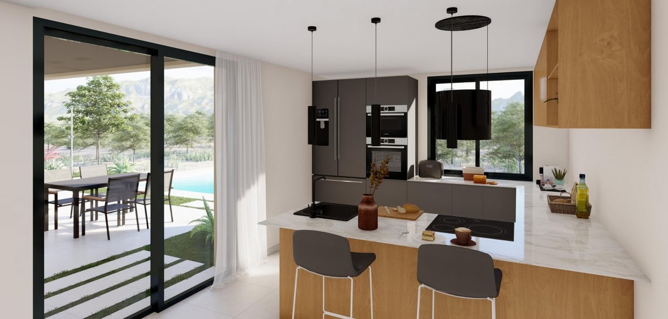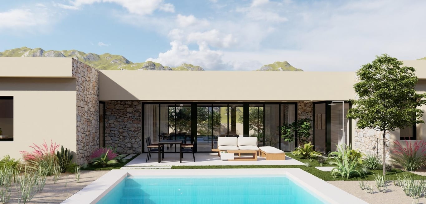 NEW BUILD VILLA IN YECLA, MURCIA New Build exclusive luxury villa located within a beautiful vineyard in Yecla, Murcia. The project offers modern farmhouse-style villas built on plots of 20,000 m2, with olive trees and a vineyard with a production of up to 10,000 kg of grapes, which makes it possible to produce your own wine. Different distribution models are offered, although it is also possible to make a totally personalized design. The standard models present a spacious house on one f...