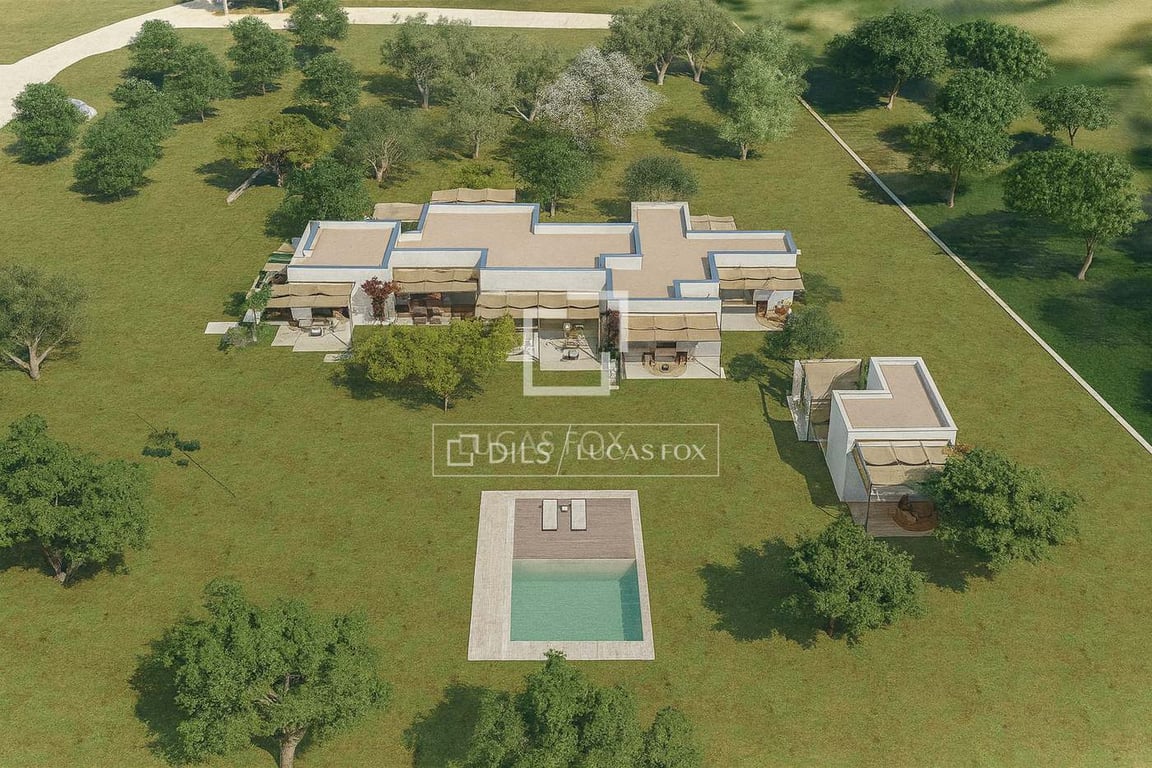 We proudly present this 3-hectare rural plot, just 2 minutes from Sant Josep and close to the island's best beaches, with plans by a renowned architect for a 5-bedroom villa. The project consists of a main house with a Boho-chic design, four en-suite bedrooms, a large living space, open kitchen and a swimming pool. Each bedroom and living area opens up to terraces and chill-out spaces. A guest house with an additional en-suite double bedroom completes the main home. Perfect as a family home ...
