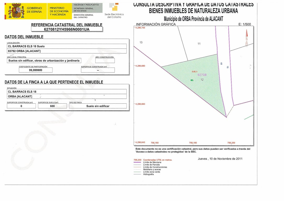 Urban plot of 609,57 m2 in the urbanization of Orbeta, Orba (Alicante ) Costa Blanca. On this plot is possible to build a house on two floors. The plot has fantastic views of the valley and mountains. Just a few minutes drive to the village of Orba with all its amenities .