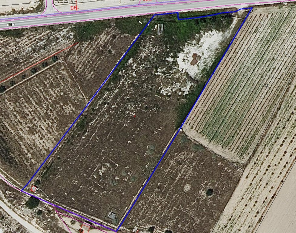 For sale: fully fenced parcel of roughly 11000 m2. The land, now empty, was used for storage of goods and can continue for that purpose, or can be turned into an orchard, a garden or serve as as investment. The parcel is flat, located by a busy road, equipped with irrigation water. Two access points, each with gate. About the areaLa Romana is a charming town known for its tranquil rural setting while being conveniently close to larger towns and the coast. Surrounded by vineyards and almond grove...