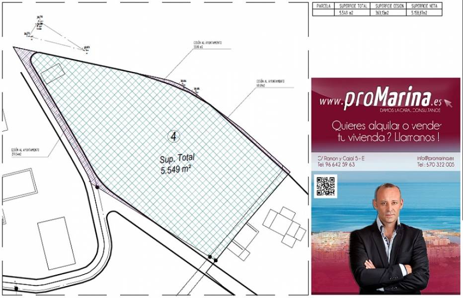 Plot for sale of 5.550mt2. Located in Las Rotas de Denia. The use of this plot is residential, planning system: Open building, dominant use: Residential unitary, building typology: Single-family isolated. On the plot it is possible to build 4 villas of 1200mt2 each one and even the plots can be sold separately.