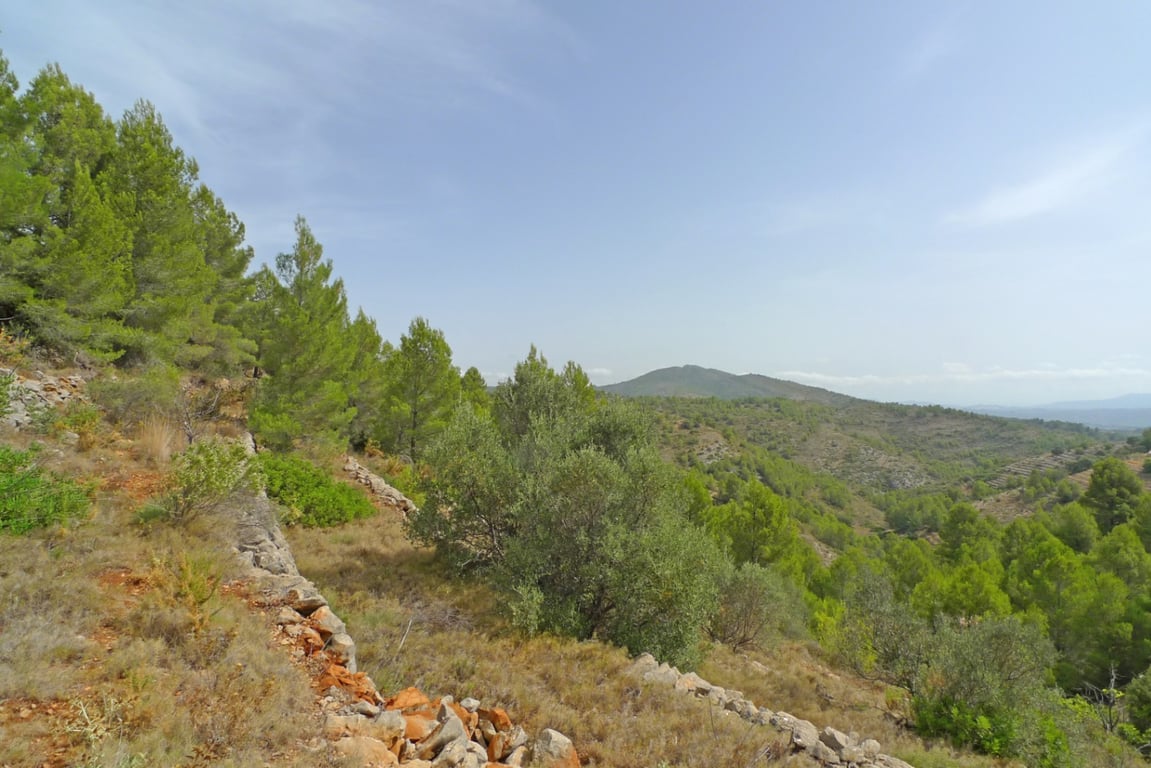 A fantastically located plot of 26.000 m2 with views of the Mediterranean sea, the coastline, the valley and the Bernia, with clear bluesky views of Ibiza!Totally private and overlooked. On the plot there is a small building with a fireplace and bathroom. Possibility to construct 400m2 property with pool and out building, ideal for someone looking for a change of lifestyle. Quiet location but just 5 minutes from several restaurants and 20 minutes from Jalon with terraces, bodegas, supermarkets, ...