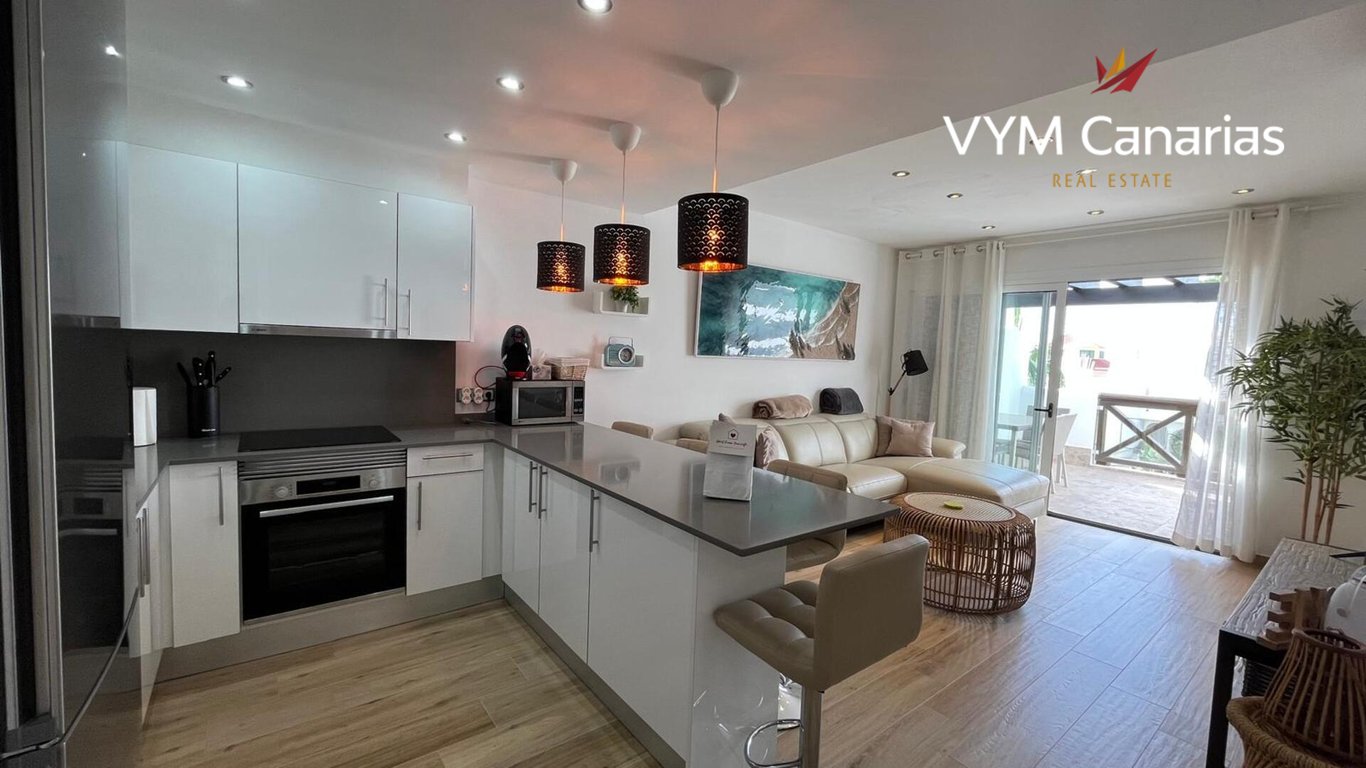 We proudly present this beautifully renovated apartment, located in the sought-after Adeje Paradise complex, just minutes from the beautiful Playa Paraíso. This elegant and modern apartment offers the perfect combination of comfort and luxury, ideal for both permanent and holiday living. The modern open-plan kitchen is equipped with high-quality finishes and offers ample space to prepare delicious meals, perfect for enjoying with friends and family. The apartment also features a practical utilit...