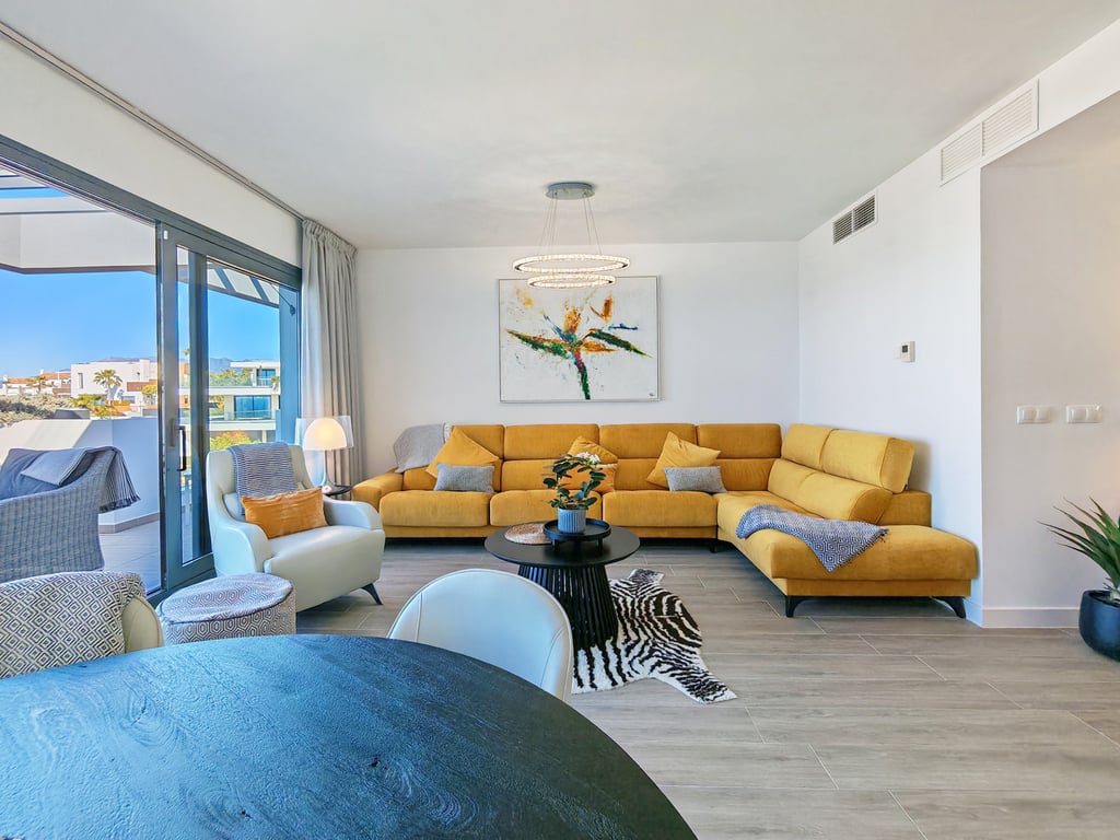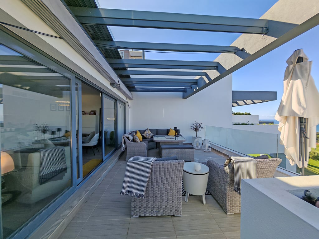 Set above the fairways, this luxury frontline golf penthouse for sale in Cabopino, Marbella with panoramic sea and mountain views delivers a striking combination of elevation, light, and location. Moments from the marina and some of the finest sandy beaches along this stretch of coastline, the property enjoys a highly desirable setting with key lifestyle amenities close at hand. Inside, the living area opens through expansive sliding glass doors onto the terrace, allowing natural light to flood...