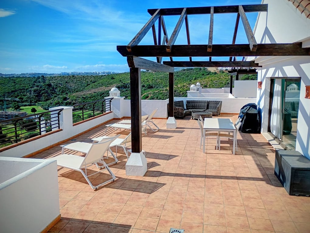 A stunning 3 bed penthouse in Casares Costa with amazing views from the expansive terrace. The apartment is bright and spacious, and with it's views it definitely has the 'Wow' factor. Located in Casares Costa, next to Finca Cortesin, the complex has 3 swimming pools, and 3 children's pools You have 2 golf courses on your doorstep, and many more within a short drive; and it's just a kilometre to the sandy Casares beach. Included in the price are 2 parking spaces, and a storage room.