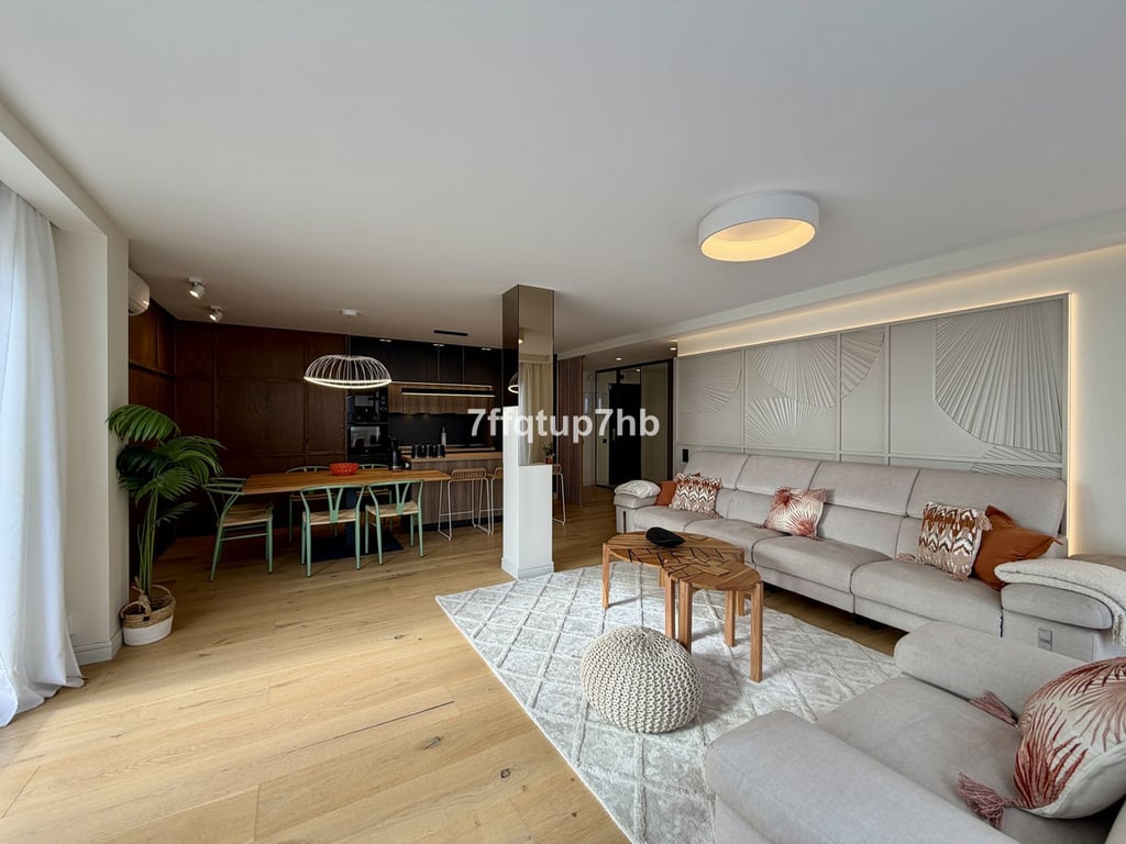 An exclusive beachfront penthouse, ideally situated to enjoy the perfect balance between vibrant city life and the serenity of the coast, with stunning panoramic sea views. This magnificent property offers three bedrooms and two bathrooms, and stands out in particular for its refined, luxurious design, high-quality finishes and an exceptional terrace that invites you to fully embrace the Mediterranean lifestyle. The interior features a modern open-plan kitchen with a central island, seamlessly i...