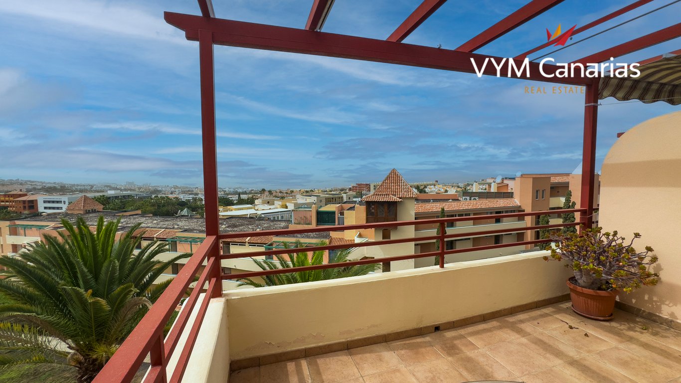 We are happy to offer this beautiful penthouse located in the quiet and well-maintained complex "El Naranjal" in El Madroñal, Costa Adeje. The penthouse consists of two bedrooms, a bathroom and a spacious living room, offering a spacious and comfortable space, a semi-open and fully equipped kitchen and a laundry room add comfort and functionality. The highlight of this penthouse is a beautiful terrace, which offers spectacular views of the ocean, mountains and the coast. The apartment is sold un...