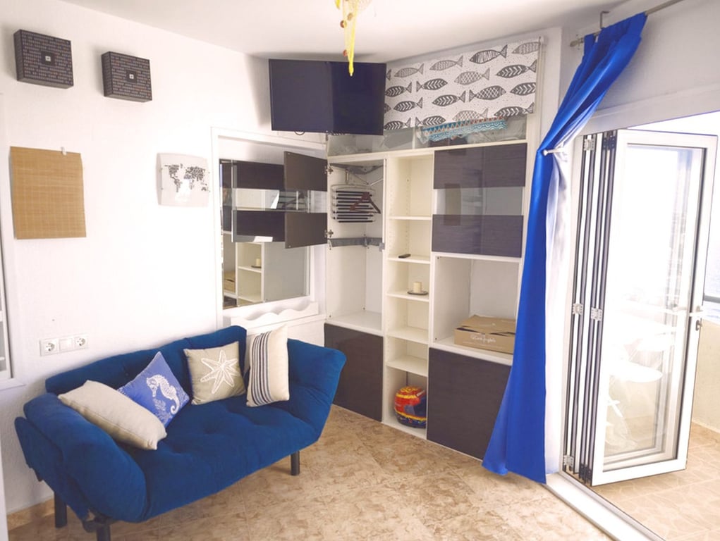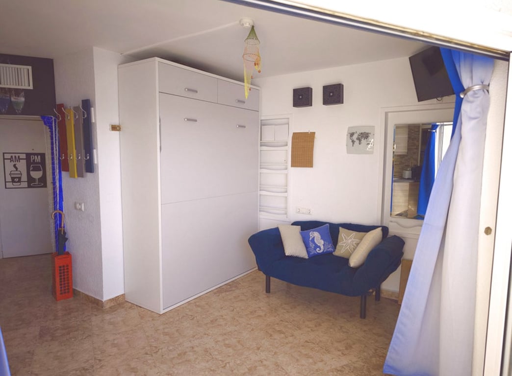 Fantastic studio with panoramic sea views on the beachfront in Fuengirola. Discover this fantastic studio located in a prime location, facing the beautiful Fuengirola beach. With stunning panoramic sea views, you'll have the privilege of enjoying both sunrise and sunset from the comfort of your home. The space includes a cozy living room with an integrated kitchen and a convertible bed that discreetly hides inside the wardrobe to maximize the usable area. It also has a full bathroom and a wonder...