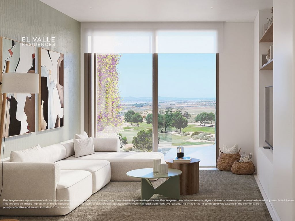 A brand new exclusive residential project offering contemporary style frontline golf apartments with 2 or 3 bedrooms and 2 bathrooms located in the heart of El Valle Golf Resort, Murcia. The apartment block is over five levels and the interior layout comprises of a bright and spacious open plan lounge and dining area with large windows opening onto the exterior terrace. Within the main living space is a fully fitted modern American style kitchen with wall and base units and a centre island. ...