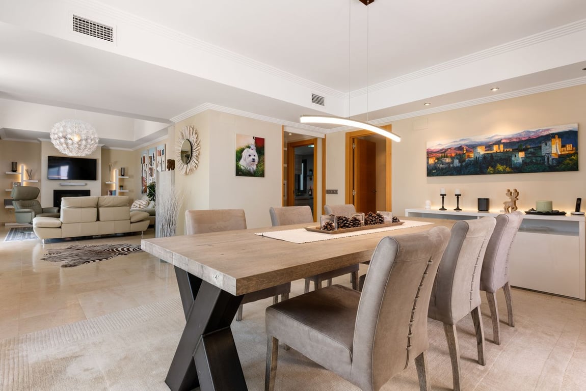 Located in the sought-after Los Flamingos resort near Cancelada, this stylish and spacious penthouse offers a harmonious blend of natural light, stunning views, and comfort. Originally designed with three bedrooms and three bathrooms, the apartment is currently configured as a generous two-bedroom, two-bathroom home. Thanks to its smart layout, it can easily be converted back to the original design—perfect for those in need of additional space for guests, a home office, or family. The living are...