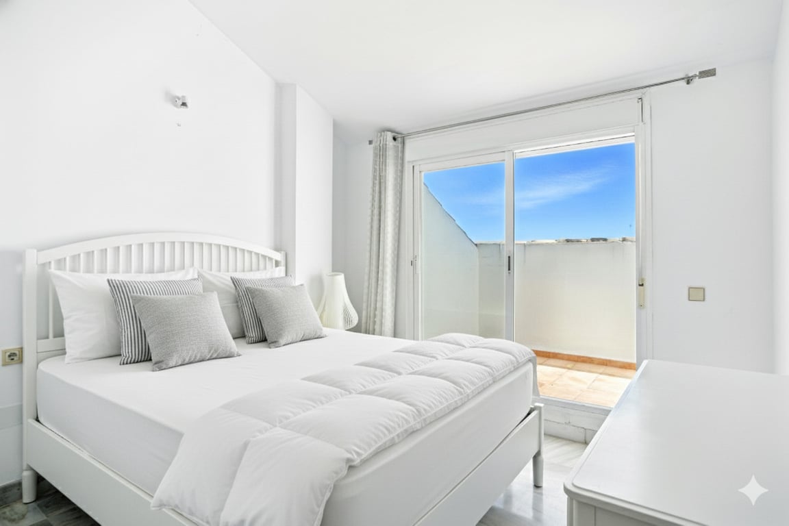 Beautiful south-facing apartment with magnificent sea views, located in the sought-after community of Pinos de Nagüeles, in Marbella’s prestigious Golden Mile. Within walking distance to the beach, shops, restaurants, cafés, and the promenade, and just a short drive to golf courses and international schools. This charming corner property enjoys a prime position and consists of three bedrooms and three bathrooms, with the master bedroom en suite. The two upstairs bedrooms each have their own priv...