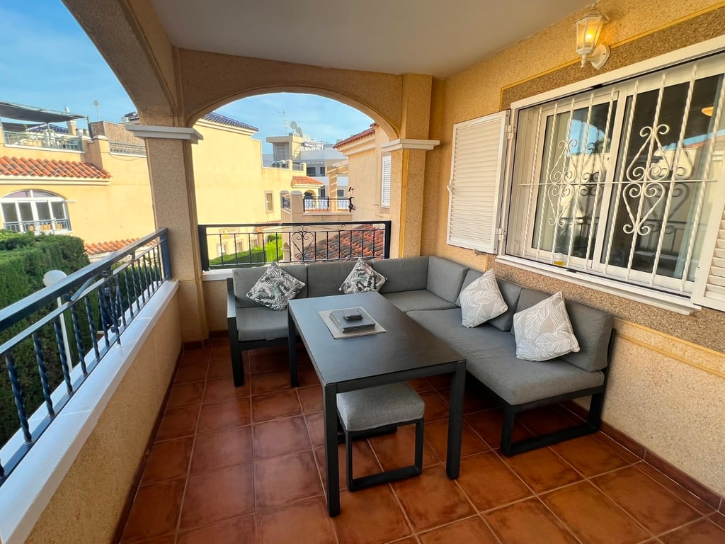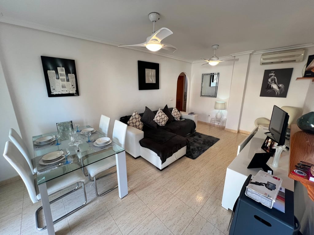 A very well looked after penthouse with massive sun terrace. This property has 2 bedrooms and 1 bathroom, a large balcony and a very large sun terrace. The property has been very well looked after and also comes with an underground parking space and large storage room. The community is well kept and has a very nice communal garden and swimming pool. The beach and the many bars and restaurants are very close in Mil palmeras.