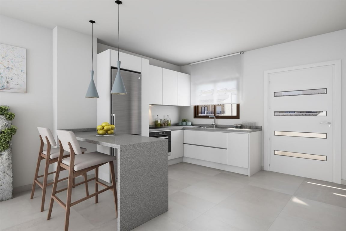 MODERN NEW BUILD TOP FLOOR APARTMENT -2 bedroom Top floor apartment with private roof solarium. This property offers spacious living room, terraces, pre installation of air conditioning, a complete white goods package and exceptional build quality as standard. Also included is a private parking space and communal swimming pool set within a quiet residential area.Located in a beautiful place, surrounded by two seas, the Mediterranean Sea and the Mar Menor that together with the natural park of th...