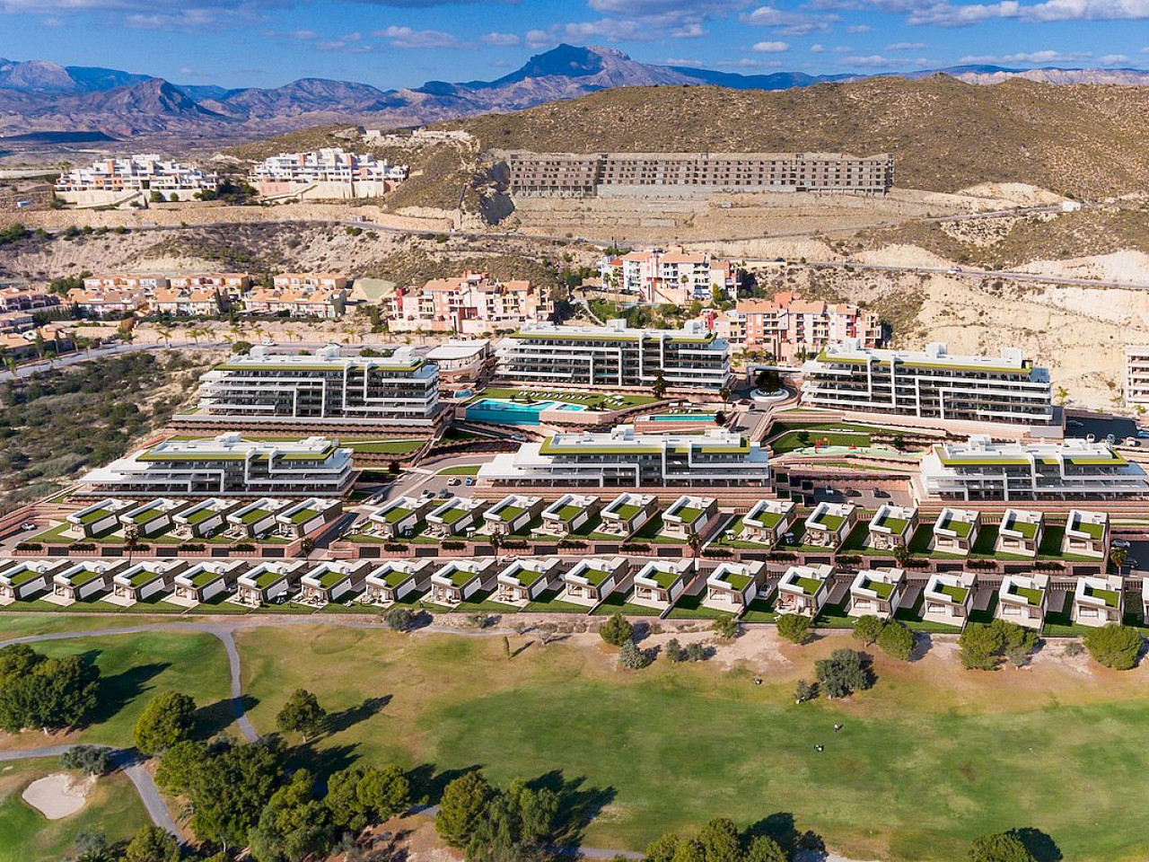 Bonalba Green is an exceptional new residential complex of apartments and villas in the Bonalba Golf area of Alicante. This development is set in the serene municipality of Mutxamel and comprises 121 apartments and 87 single-family homes. The two-bedroom apartments are perfect for those valuing luxury in a compact form, these apartments offer spacious living areas, modern kitchens, and large terraces with sea and golf course views. Three-bedroom apartments are ideal for families or those s...