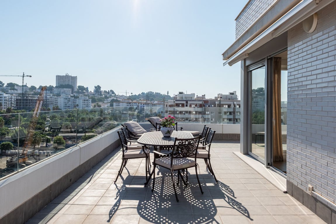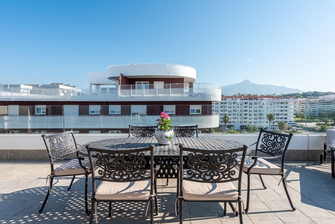 We are pleased to present this bright and modern penthouse in the best location in Nueva Andalucía! Enjoy modern living within proximity to all the amenities you need; grocery stores, bars, restaurants, schools, health center, golf courses, gym, and much more. A perfect choice for both families and investors. In a 20-minute walk you will reach the sea and the lovely promenade that stretches from San Pedro via Puerto Banús to Marbella Center. The apartment has three bedrooms, two bathrooms, a kit...