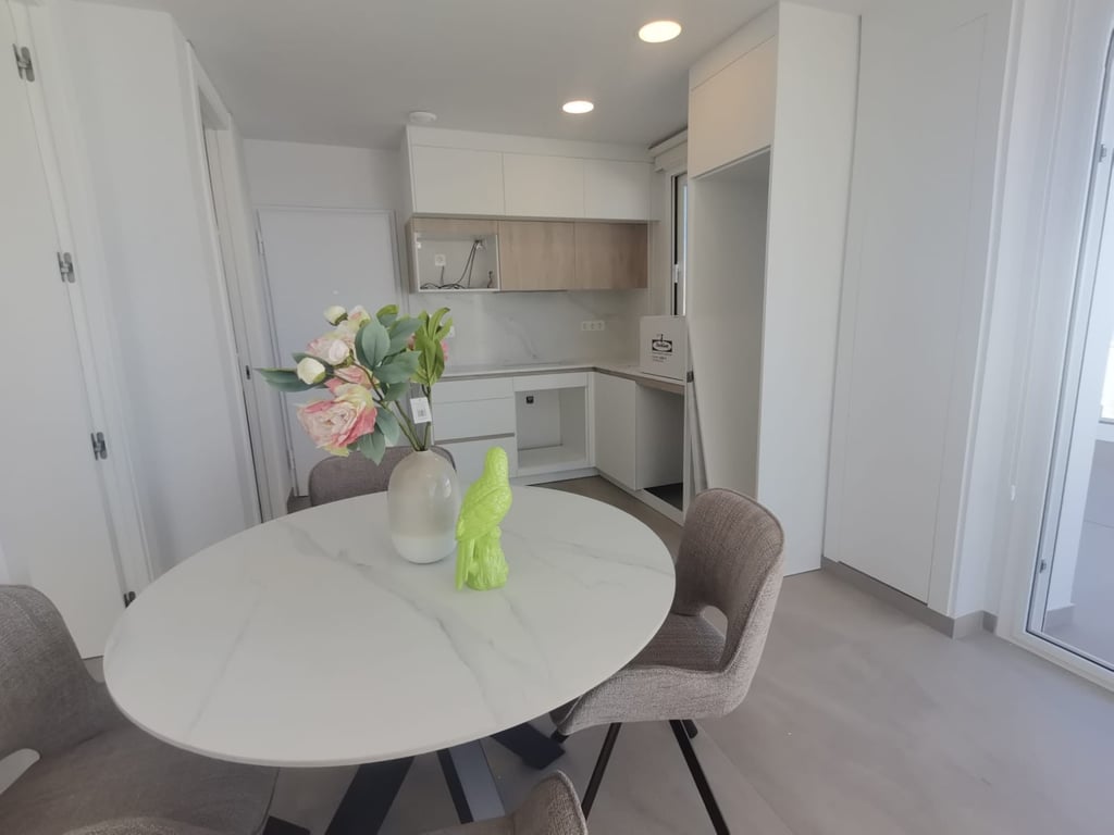 Penthouse in Torrevieja Playa de Los Locos Every day you can walk along the soft sand and listen to the melody of the sea waves thanks to the excellent location of this ground floor flat in Torrevieja, situated only 50 metres from Los Locos beach. In front, its pleasant promenade with a variety of bars, restaurants and chiringuitos where you can savour authentic Spanish paellas. Beautiful white kitchen with matching appliances, marble tiles and taps. Open plan living-dining room that ...