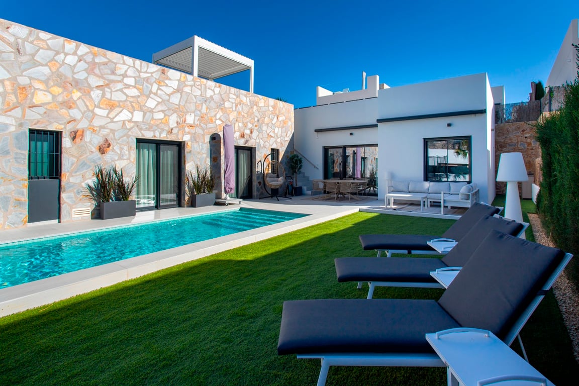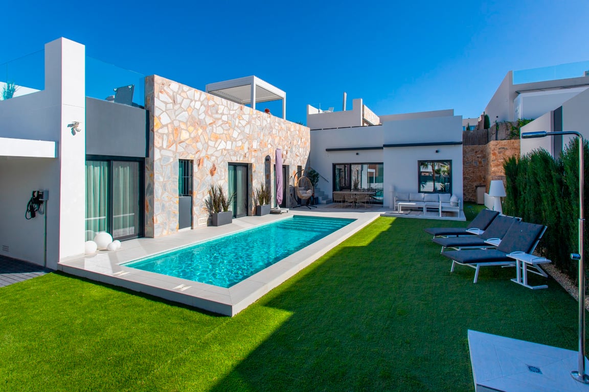 Experience the ultimate Spanish lifestyle in this modern Key-Ready villa with 4 bedrooms and 3 bathrooms, located in the prestigious La Finca Golf Resort. This property combines contemporary luxury with Mediterranean charm, offering everything you need for relaxed living or carefree holidays under the Spanish sun. Step inside and immediately feel embraced by the bright, open living space. Large windows flood the interior with natural light and offer stunning views of the garden and pool. The liv...