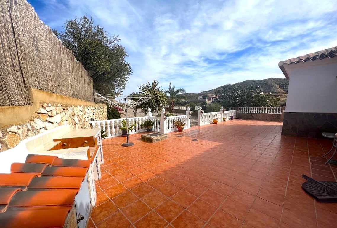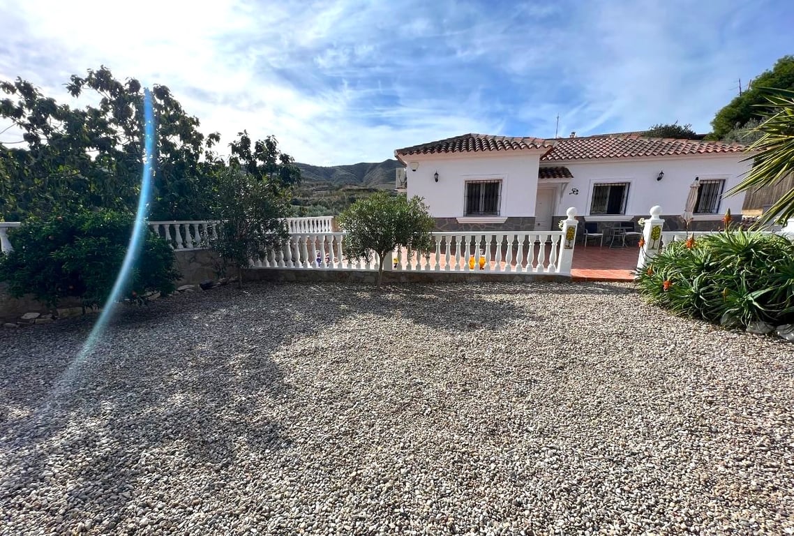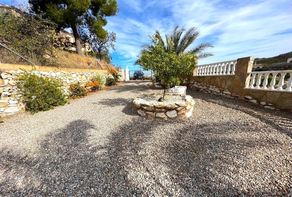 Double gates lead to a long gravel driveway with sufficient space to park a motorhome, several cars etc and a garage could be built if required. There is a tiled front terrace to the front with lovely views and for shaded or sunny seating. Gates to both sides of the villa secure the rear garden and pool area. There is an 8 x 4 swimming pool surrounded by terrace for soaking up the suns rays. The gardens are established with trees, shrubs and plants but low maintenance so the property would lend ...