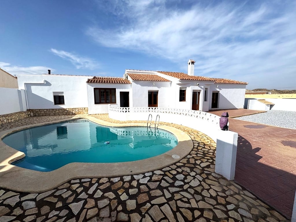 Detached 4 bed 3 bath refurbished villa which combines modern and contemporary with traditional character to make a stunning, light and airy and unusual property. Located on the end of a quiet cul de sac the property is completely private at the rear and has views of the countryside. It is located in the popular hamlet of Las Golondrinas which is a couple of minutes drive from the village of Arboleas and within walking distance for those who like walking. It is just a 30 minute drive to the Medi...