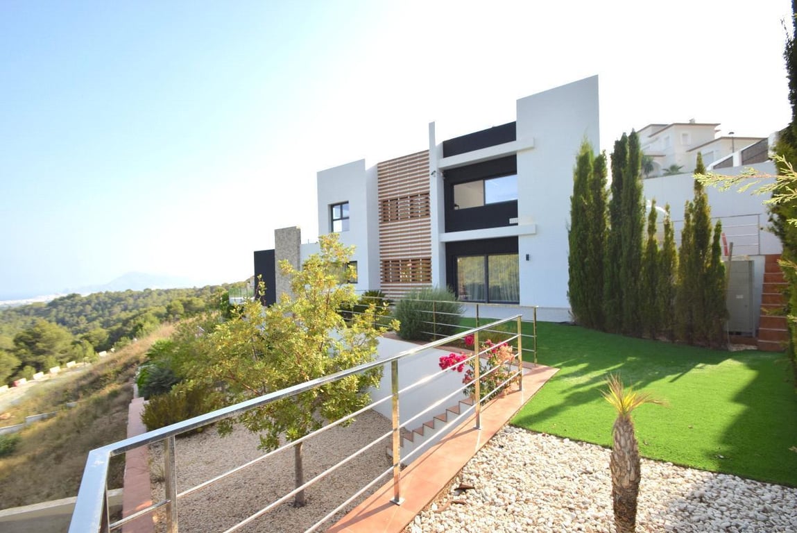 Newly built villa with panoramic views of the sea and the mountains, located in the hills of the Altea town surrounded by tranquility and nature. The villa is located a few minutes from the Centre of Altea and the villages nearby as well as its beaches. The villa is situated on a plot of 2383 sqm with a large infinity style pool, space to enjoy the sun, summer kitchen, garage, space for parking and green spaces with trees. The villa is divided into 3 floors and consists of 606 sqm. The under lev...