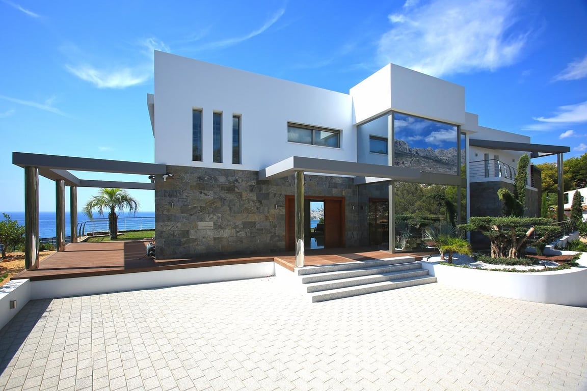 Front line luxury villa for sale in Altea, situated in a very quiet residential area (cul de sac) and with lots of vegetation, very close to the exclusive Greenwich Sports Marina Yacht Club and all kinds of services. This modern design luxury villa enjoys stunning panoramic views of the sea and the Bay of Benidorm and sull all day (South facing). It is located on a fabulous 1.800 m2 plot and has a total constructed area of 722 m2 distributed over 2 floors + basement floor (communicated with a li...