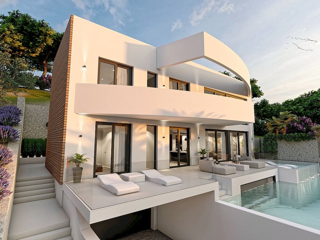 4 Bedroom Luxury Villa with private pool and lift in Altea Hills, close to the golf course. When driving into the plot you will find a spacious underground parking with room for several cars and entrance hall with elevator. On the ground floor you will find a master bedroom with en-suite bathroom. You will furthermore with a guest toilet, as well as an open kitchen, dining area and living room. Behind the kitchen you will find a practical extra space for storage and laundry. From the bedro...