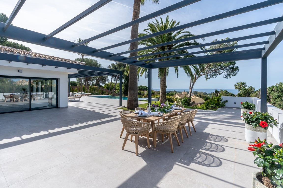This stunning contemporary villa for sale in Elviria, Marbella with panoramic views exemplifies modern luxury and timeless elegance. Renovated with meticulous attention to detail, it blends premium amenities with warm contemporary finishes for an exceptional living experience. Bathed in natural light, upon entering, you are greeted by an expansive open floor plan that effortlessly flows from room to room, boasting a single-level layout, ensuring accessibility and convenience without the need fo...
