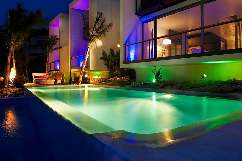 Modern contemporary luxury home (2010) for sale located 1.5 km from the beach in Benidorm Alicante. Constructed surface: 491 m2 - plot surface: 1000 m2 - 4 bedrooms, 5 bathrooms, 1 living room, 1 dining room, 1 kitchen, 3 terraces. Qualities include: under-floor heating, south orientation, air conditioning, garage, car parking, covered terraces, solarium, utility room, modern kitchen with electrical appliances.