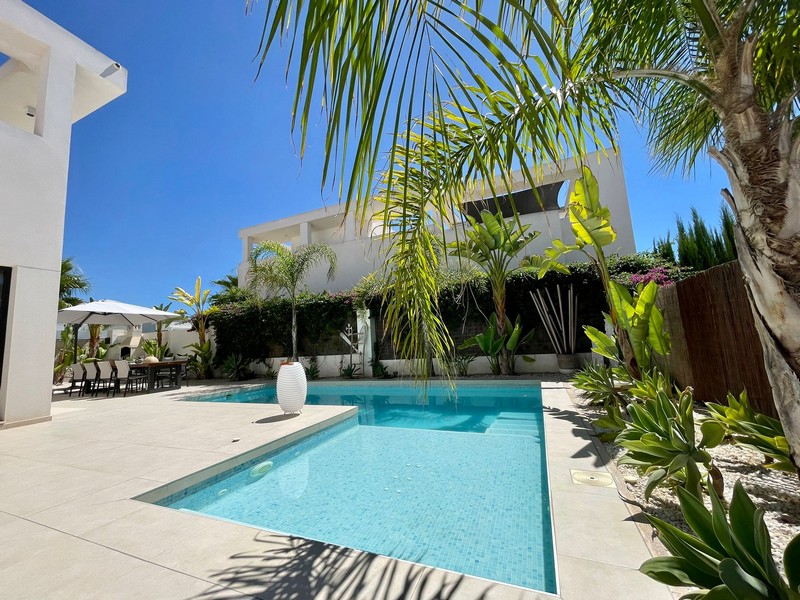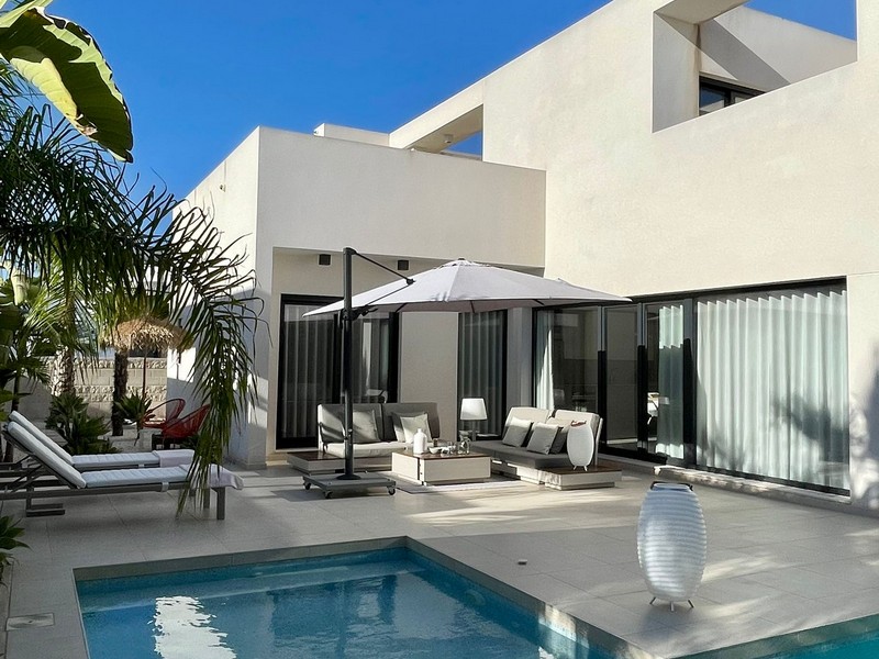 MODERN VILLA - 3 BEDROOM, 3 BATHROOM IN BENIJOFAR WITH HIGH END FEATURES Occupying one of the largest plots in the new part of Benijofar, is this modern Ibiza-style villa which was built in 2017. Presented in show home condition, this luxurious three bedroom, three bathroom villa has an excellent location with high quality finishes throughout. The...