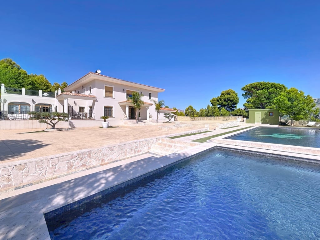 Fantastic luxury home with sea views and a large plot located in a privileged area belonging to the municipality of Benimantell. Its unbeatable location allows us to enjoy unparalleled privacy, and the property is equipped with topquality materials and design. The ground floor consists of an entrance hall, a reading and music area, a magnificent large livingdining room that is equipped with a pellet fireplace and has direct access to the outside. On this floor, we also find a beautiful independe...