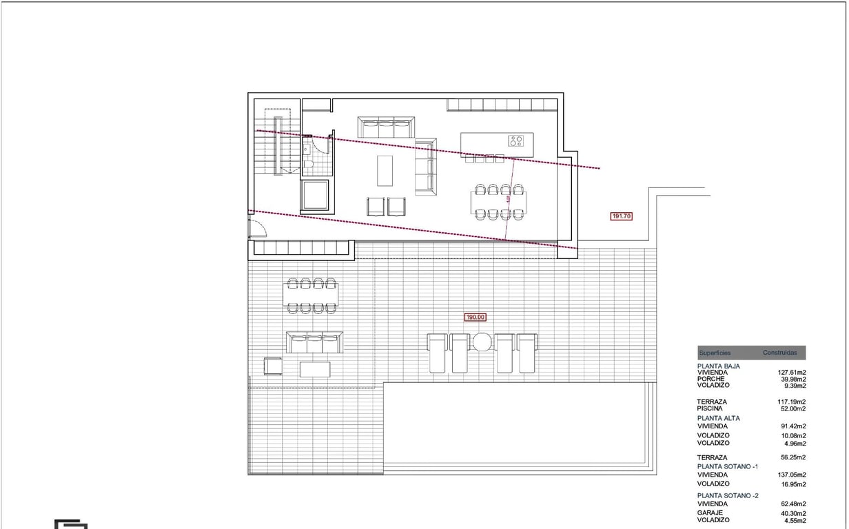 Project for a luxury villa to be built in the Montemar area of the Benissa coast with sea views and views to Peñón de Ifach.This villa, with exposed paneled concrete finishes, has 4 floors that are connected with an elevator and an internal staircase. The ground floor has a large open living-dining-kitchen area and a toilet. The kitchen is fully equipped and it has a cooking island. Sliding doors at ceiling height give direct access to a spacious terrace and a pool. The upper floor has two bedro...