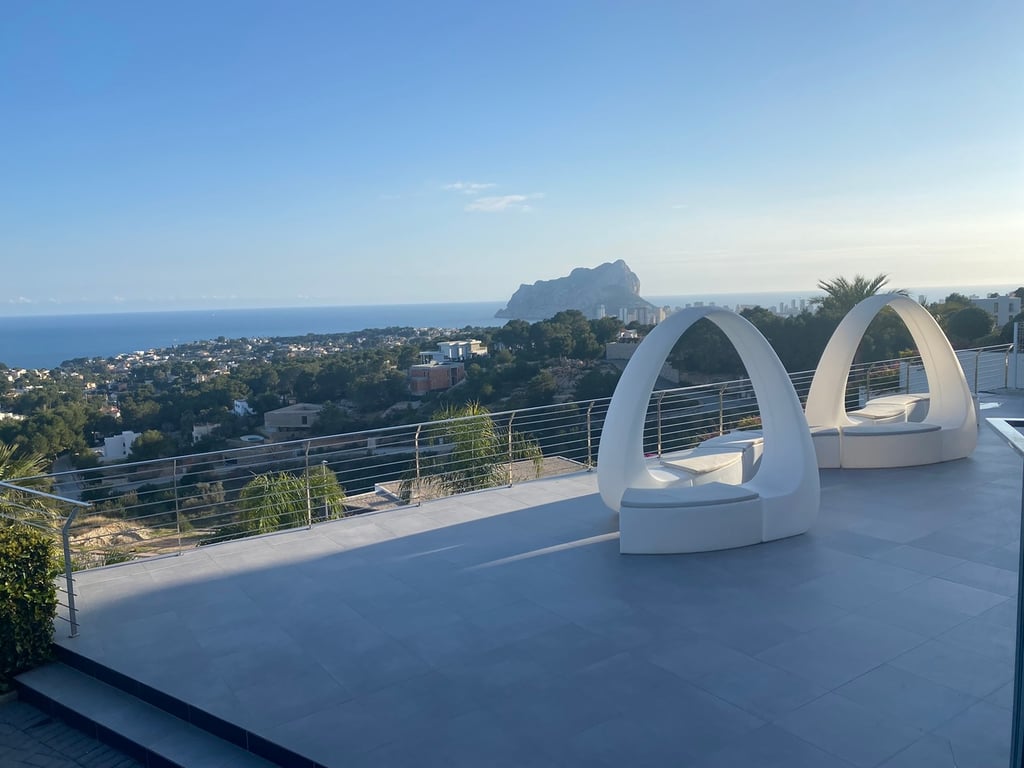 We are pleased to be offing this amazing villa located in a prestigious residential area, just 1,500 meters from the sea, this property offers extraordinary views of the sea and the Rock of Ifach, symbol of the Costa Blanca.The villa is distributed over 4 floors on a large plot of 1,800 m2 with a constructed area of 542 m2. On the upper level you enter a square with two parking spaces and go down a staircase or elevator to the lower floor where there are three bedrooms with en suite bathrooms.Th...