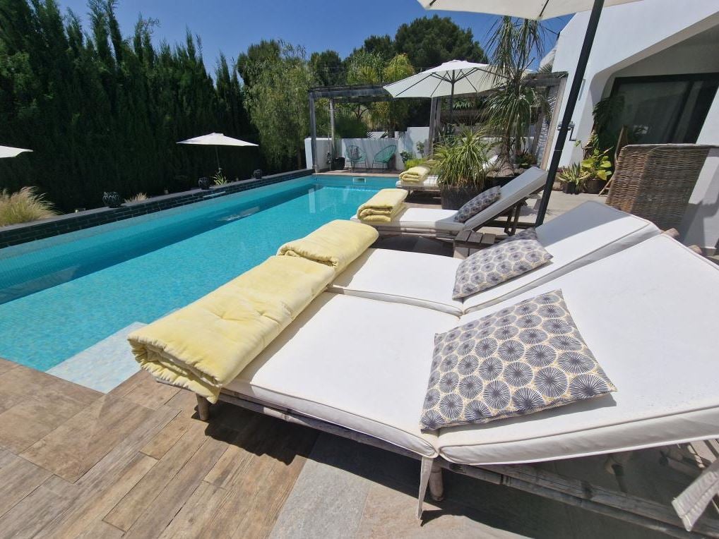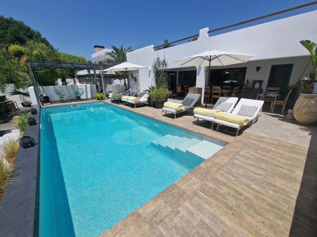 Exclusive Ibiza Style Villa for Sale on the Benissa CostaLocated very close to Moraira, and within walking distance of amenities, this stunning Ibiza Style Villa provides exceptional living and entertaining space, and an oasis garden. A large home featuring 7 bedrooms, all with ensuite bathrooms and their own private balconies, extensive poolside covered terrace, and an excellent open plan living space with a large kitchen.Outside, parking for 6 cars, plenty of sun deck, and various areas to rel...