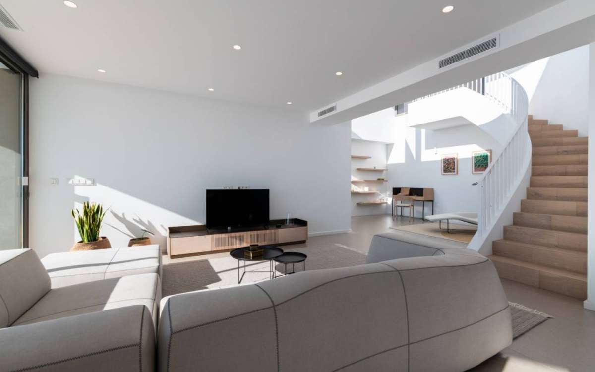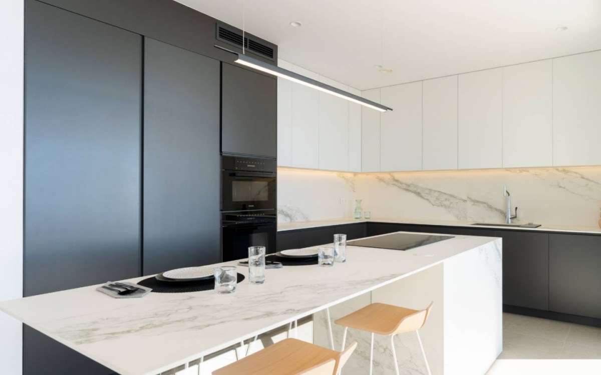 A property built on a 1,168 m2 plot, facing southwest, allows us to enjoy stunning sunsets. Its atmosphere is cozy and relaxing, with an aesthetic that combines neutral tones, simplicity, and functionality, making the space look sophisticated yet comfortable. The mix of straight and curved lines, along with the presence of natural materials such as wood, creates a harmonious balance and captivates you from the moment you enter. The kitchen of this luxury villa features a minimalist design with a...