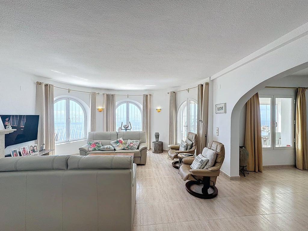 Exclusive Villa for Sale in the Dalias residential area of the Cumbre del Sol urbanization. Location: Cumbre del Sol, between Jávea and Moraira, Benitachell, Alicante, Costa Blanca, Spain We present a unique opportunity to acquire a stunning villa with incomparable views of the Mediterranean Sea. Situated on a plot of 1,163 m2 in the prestigious Cumbre del Sol urbanization, this property offers 180º panoramic views that will take your breath away. Main Features of the Villa: Plot and Surroundin...