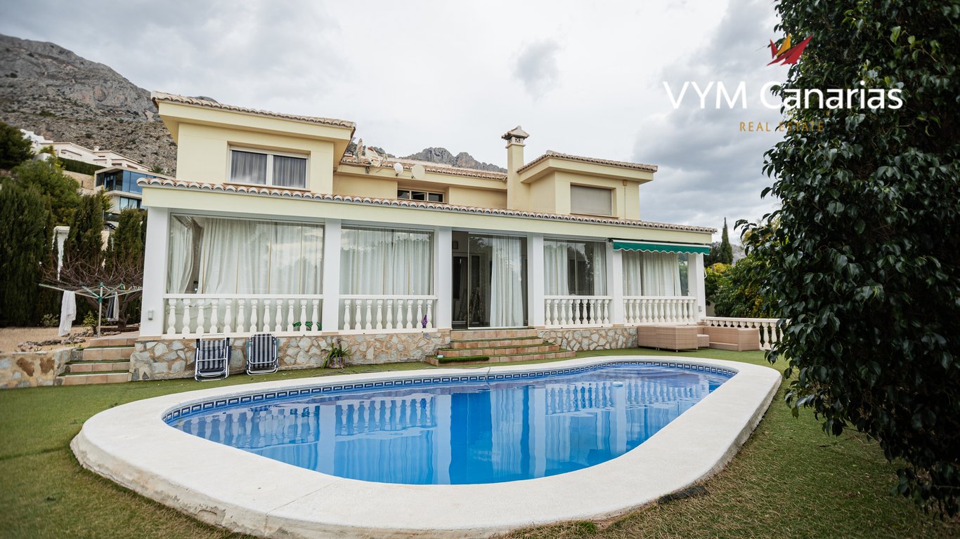Magnificent property located in the exclusive Monterico Urbanization, in Altea la Vella, offers a classic style and modern comforts in a quiet and natural environment. With a plot of 969 m2 and a built area of 475 m2 distributed over three floors, this impressive residence has six bedrooms and four bathrooms. On the main floor, there is a bright living room with access to a large glazed terrace that offers panoramic views of the lush garden and the spectacular pool. The independent kitchen, ful...