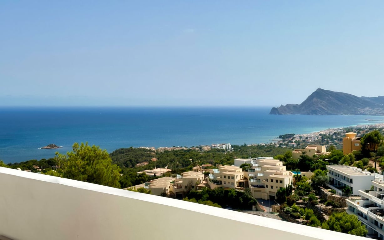 Nestled in the exclusive Sierra de Altea, this elegant villa stands on a 1,348 m2 plot, offering a constructed area of 282 m2. Its privileged location provides stunning panoramic views of the sea and Altea Bay, while its proximity to the renowned Don Cayo Golf Course ensures a lifestyle of leisure and sophistication. The property is designed with convenience and luxury in mind. At street level, a spacious garage accommodates two cars, with an elevator providing seamless access to the villa. Th...