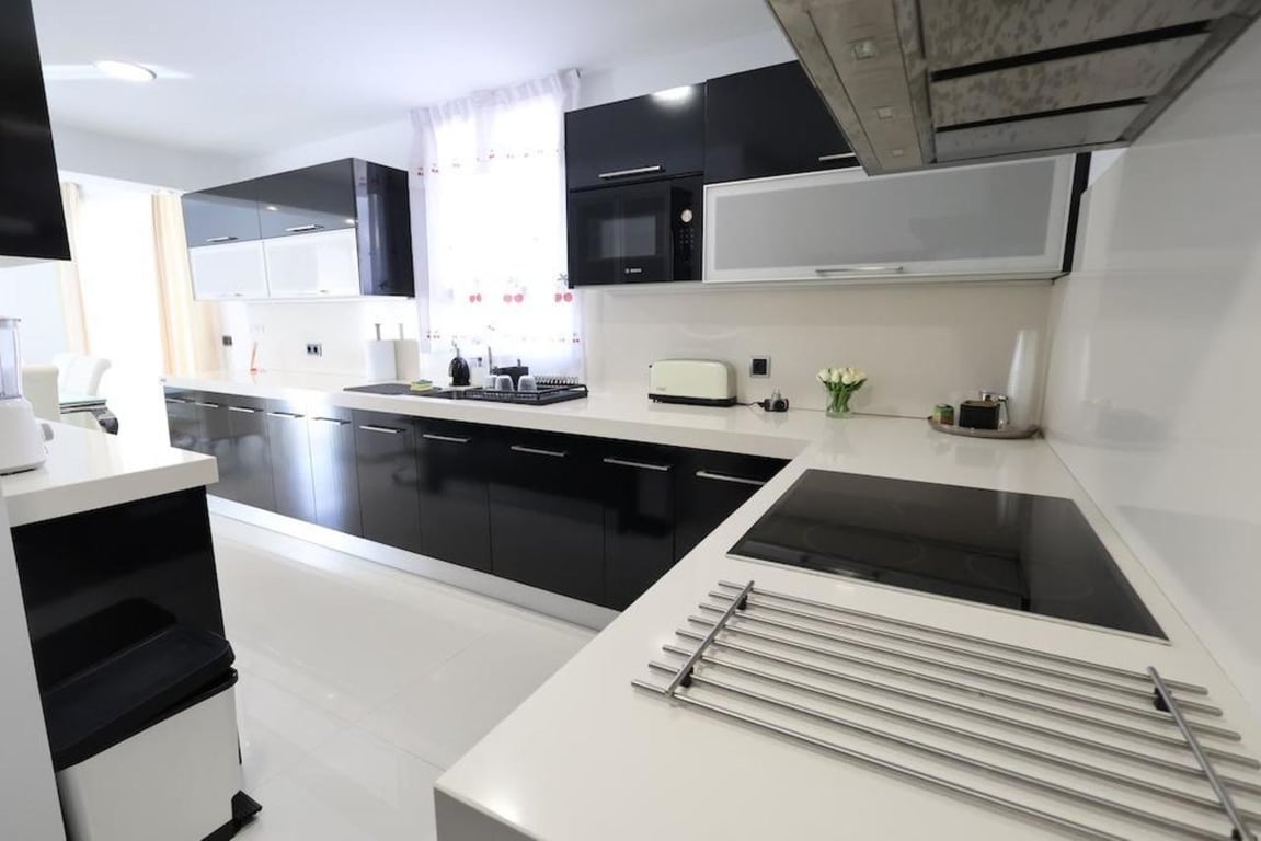 Cabo Roig Detached villa on a 415 m2 corner plot overlooking two streets.This modern, two-story home offers a contemporary and functional design, measuring 222 m2. It features 4 spacious bedrooms and 3 bathrooms, a bright living-dining room with a semi-integrated kitchen, a private pool, a driveway, and a large private solarium, perfect for enjoying the sun year-round.Sold fully furnished and equipped with air conditioning. Located in one of the most exclusive areas of the coast.