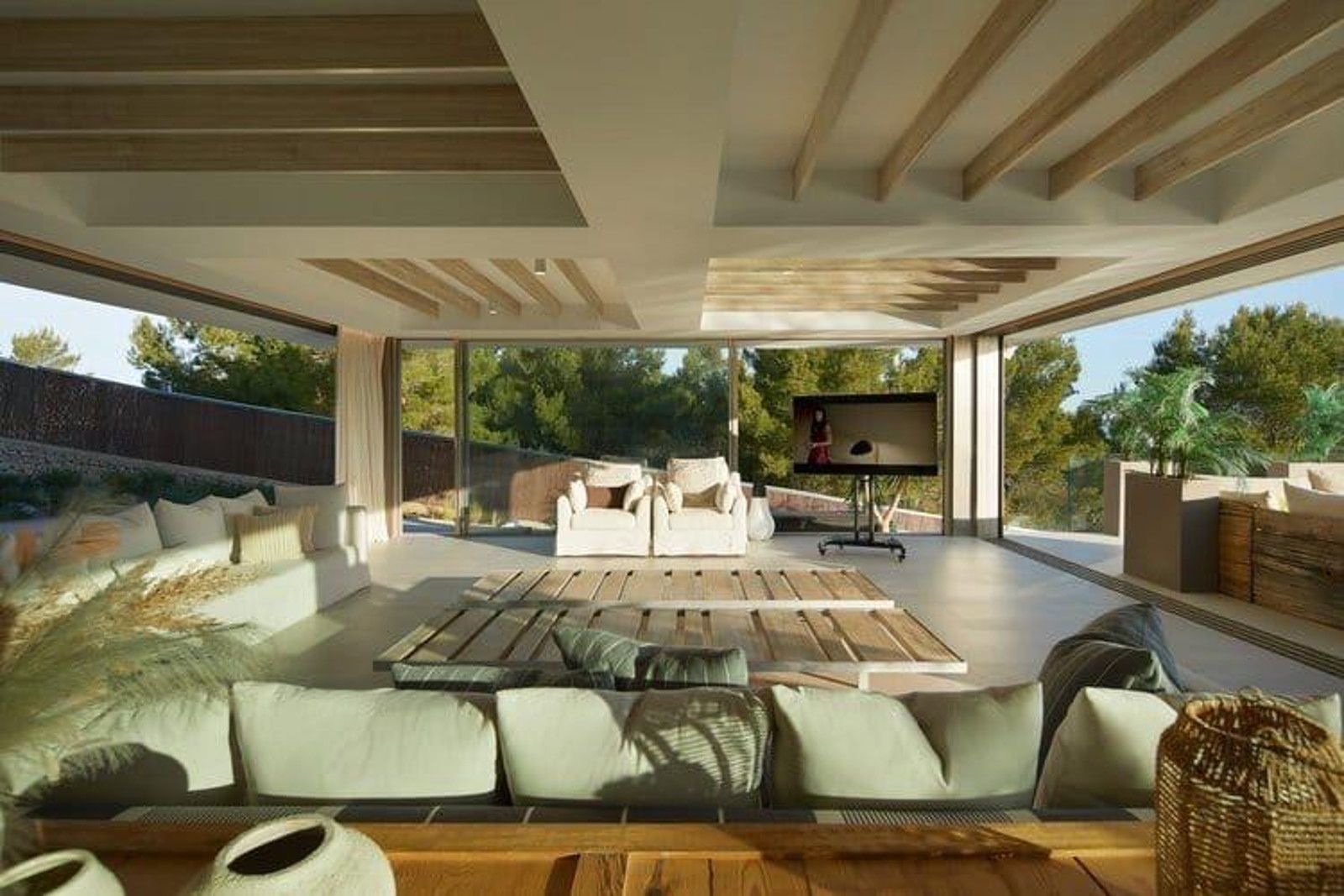 Exclusive villa with sea views and beach access in Portinax, one of the most sought-after and peaceful areas of Ibiza. This stunning contemporary-designed property has 8 spacious bedrooms, 8 bathrooms, air conditioning, and fitted wardrobes.The fully equipped kitchen is integrated with a spacious dining room, perfect for gatherings. The modern villa has a private pool, paddle tennis court, soccer field, and various play areas.Located on a 2,100 m2 plot, with approximately 600 m2 of built area, i...