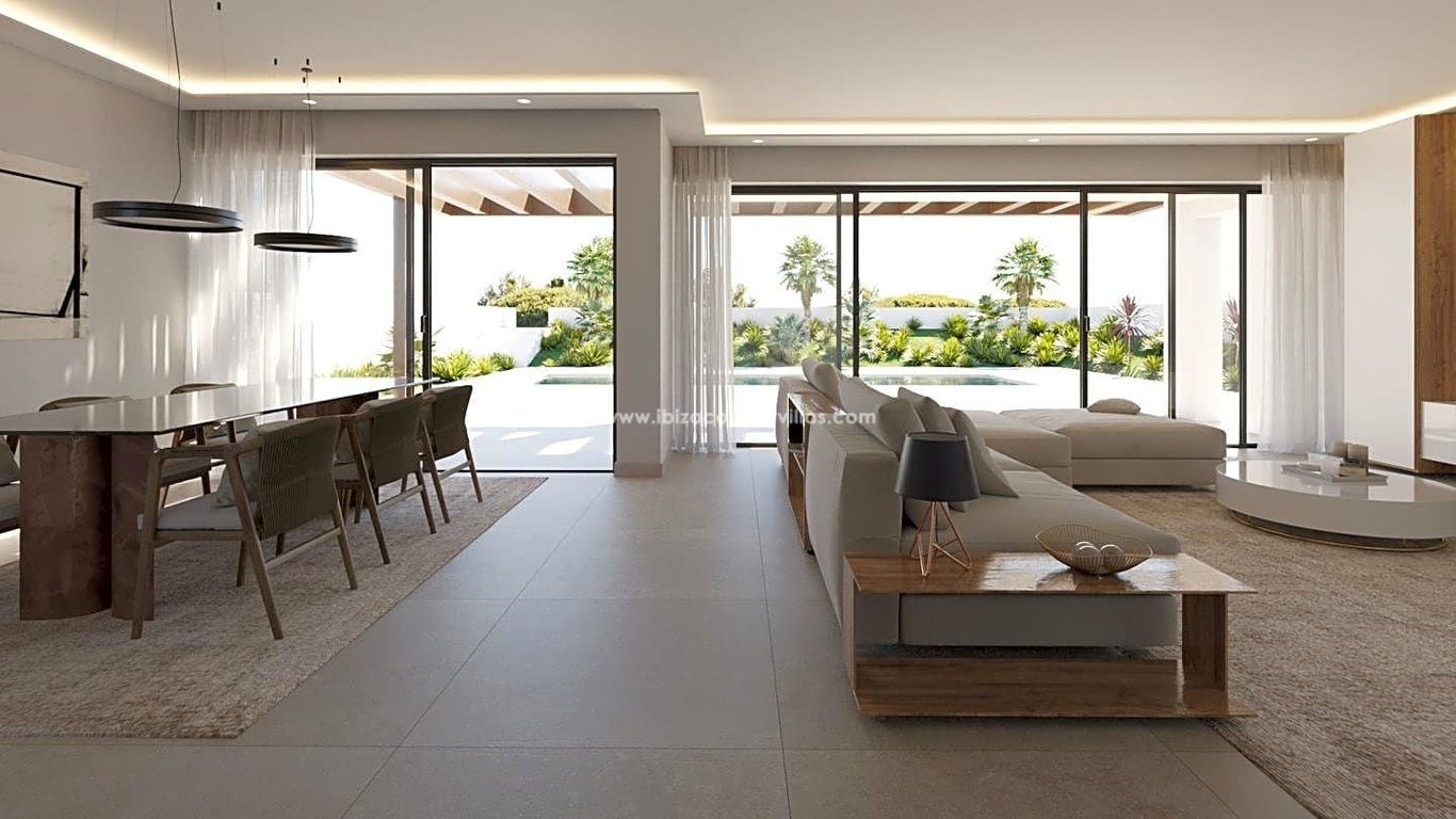 Ibiza Country Villas presents these impressive villas of impeccable and efficient design, in La Joya, a beautiful and quiet residential area of San Carlos. INTERIOR: The house is part of a set of 5 select detached and independent houses, all of them distributed over two floors plus terrace/solarium on the roof. Already from the entrance you can appreciate the calm and beauty of the property, as through the spacious living-dining room you can contemplate the outside area with its porch and gard...