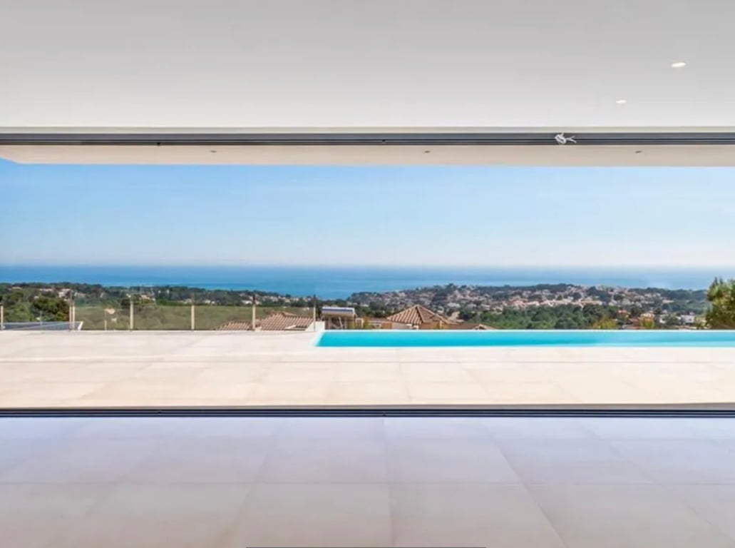 We are pleased to be offering this key ready modern villa that is finished to a high standard with panoramic views to the Mediterranean Sea. The villa is 560m2 build, this villa consists of living/dining room, fully equipped kitchen with Meile electrical appliances, 4 bedrooms and 5 bathrooms. Elevator (4pers) from the basement to the first floor (3 stops). Underfloor heating and air conditioning via ducts. Floor-to-ceiling doors and windows with aluminium profiles and double glazing, security...