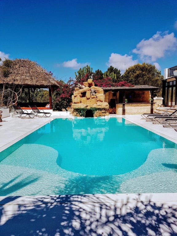 Impressive villa in Cap Martinet with spectacular sea views. This villa is divided into 600m2 of land and a plot of 5000m2. It has 14 bedrooms and 13 bathrooms, fully equipped kitchen, living and dining room with fireplace. The excellent taste and sophisticated design make this property a dream home.Only a few minutes away from Ibiza, with its old town and its typical shops, cafes, restaurants and bars. Cap Martinet is one of the most desirable residential areas of the island and very quiet. Eve...