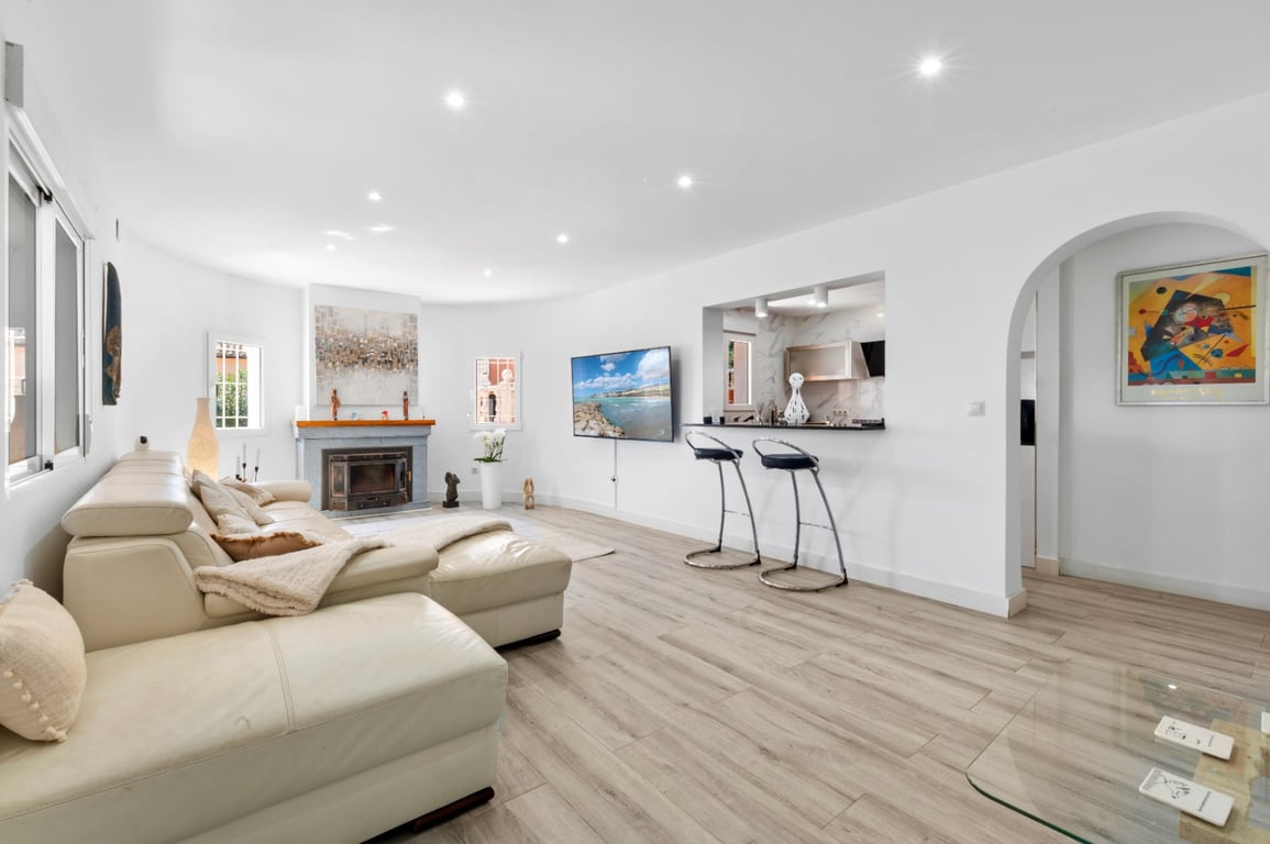 Charming Villa for Sale in Calpe Charming villa for sale in Calpe, set on a spacious 990 m2 plot with a total built area of 190 m2, all distributed on one floor and enjoying a sunny southfacing orientation. Fully renovated in 2022, the home blends modern comfort with Mediterranean charm. It features three spacious bedrooms, three modern bathrooms, a guest toilet, and a cozy living room with a fireplace and split heating system. In addition to the main living space, the property includes a separ...
